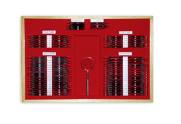 ● 驗光鏡片箱是醫院眼科、眼鏡店用來檢查人眼的屈光狀態(遠視、近視、老視、散光)和斜視及眼其他功能的一種眼科計量器具。